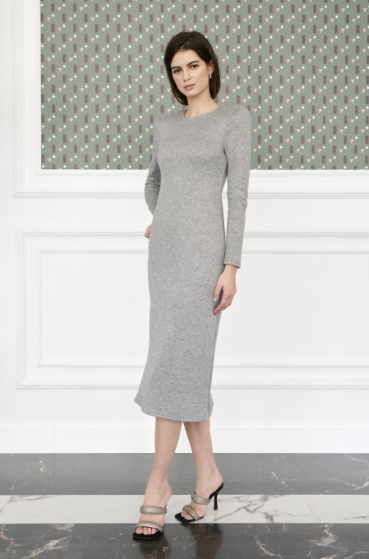 Vestido midi de corte entallado, escote a la caja y cierre de cremallera en espalda.