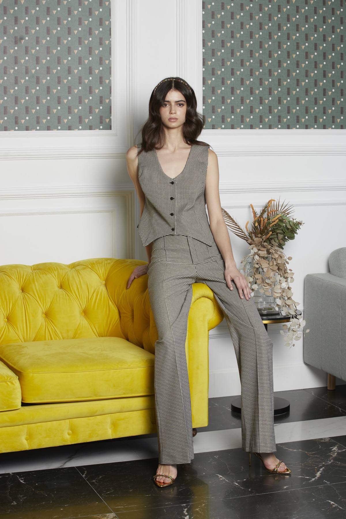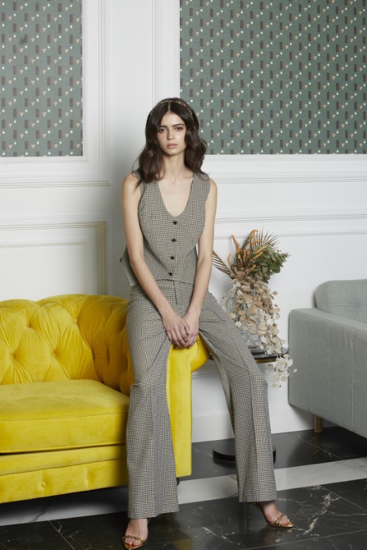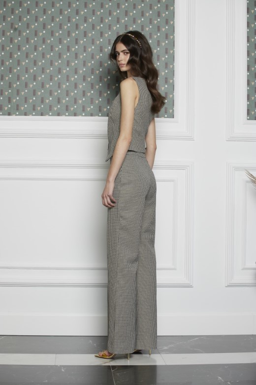De cintura alta, estiliza la figura y ofrece un toque retro. El estampado de cuadros le da un aire moderno y versátil.