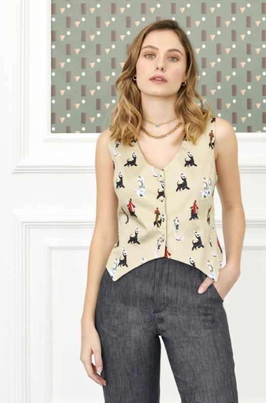 Chaleco estampado con corte entallado, escote en pico y costadillos en el delantero.