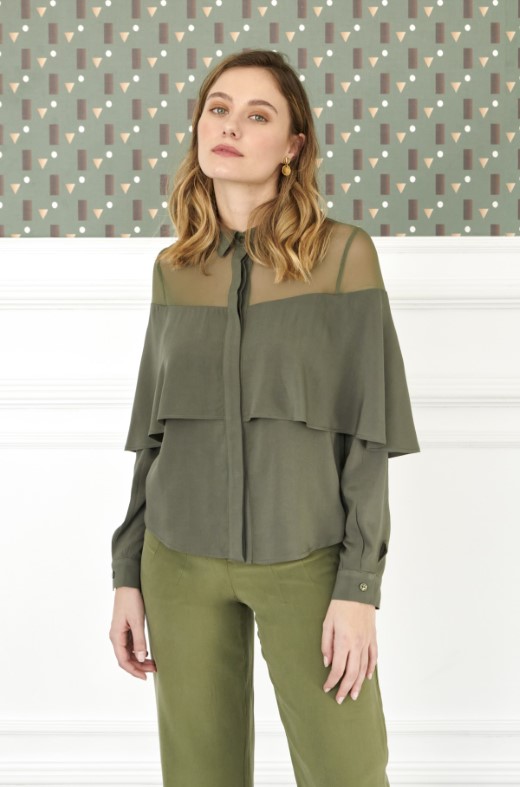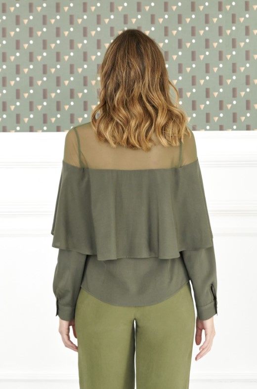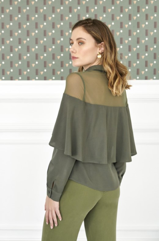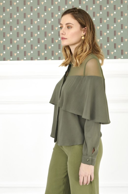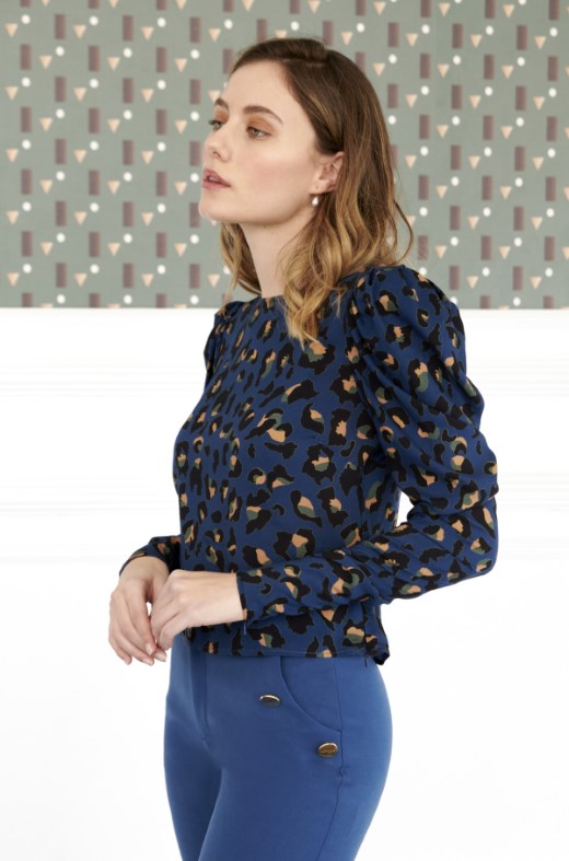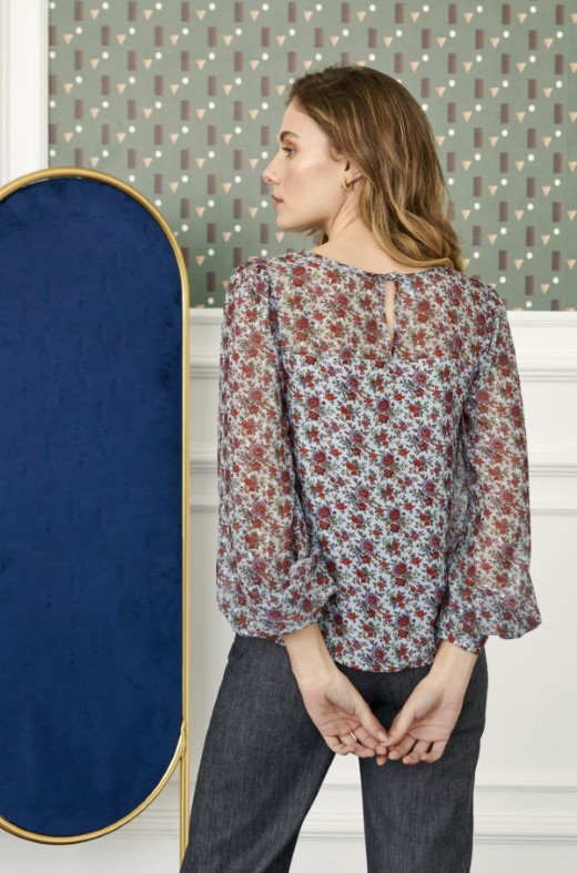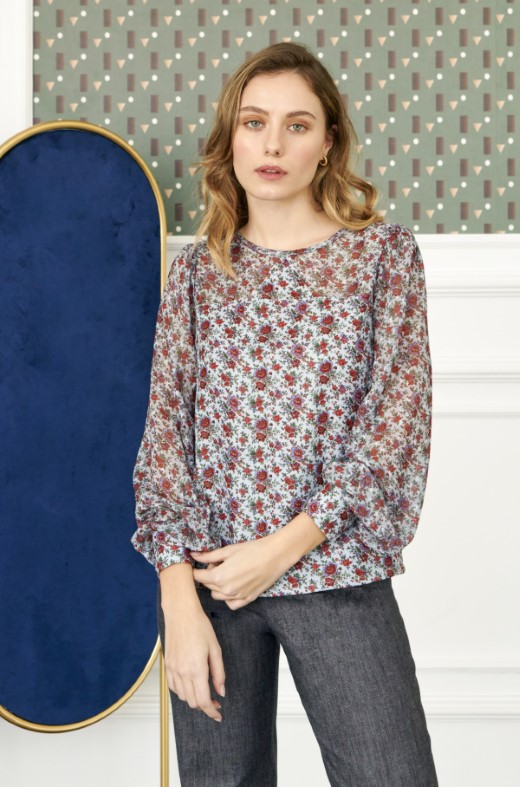 Con mangas abullonadas y puños ajustados, aporta un toque romántico y sofisticado.