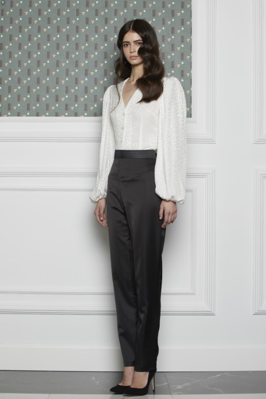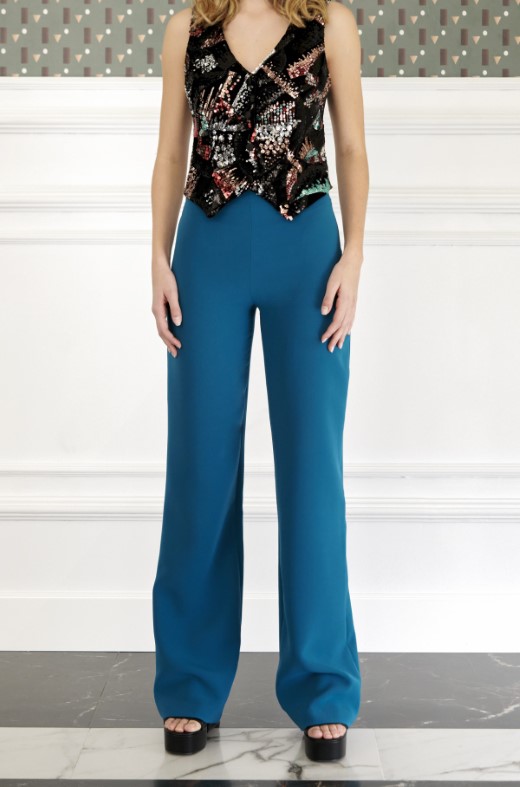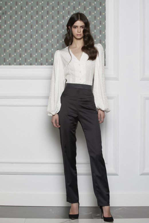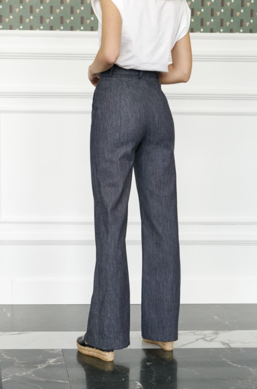 Pantalón de corte recto con cinturilla interna y rematado con cremallera invisible en la parte trasera.