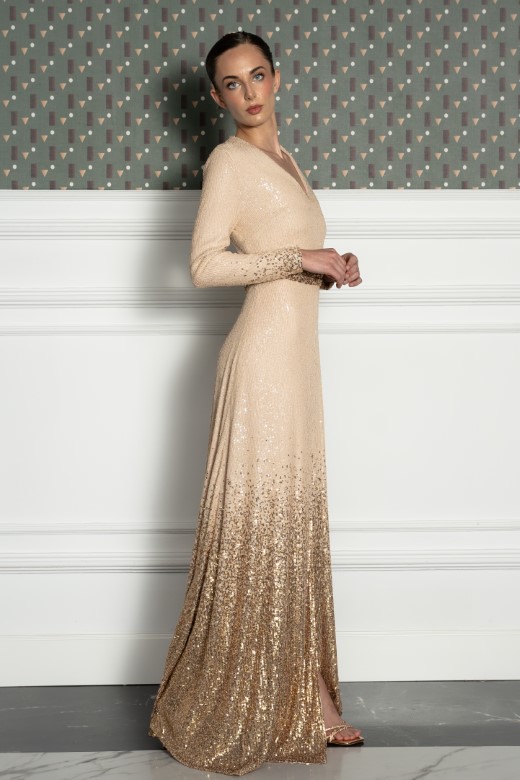 Vestido largo de silueta fluida, transmite elegancia y comodidad en un solo diseño.