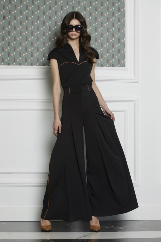 Pantalón palazzo de tiro alto confeccionado en tejido de punto grueso.