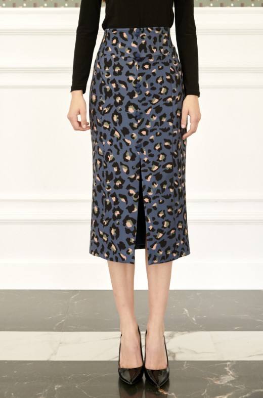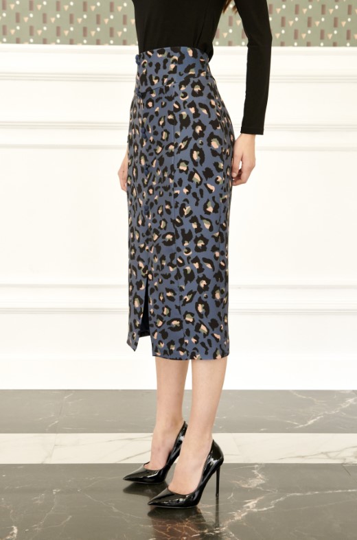 Falda midi entallada, de cintura ancha para mayor sujeción y comodidad.