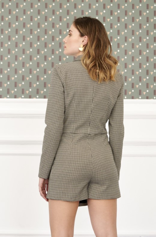Mono blazer de corte entallado.De manga larga con un elegante estampado de cuadros en tonos neutros.