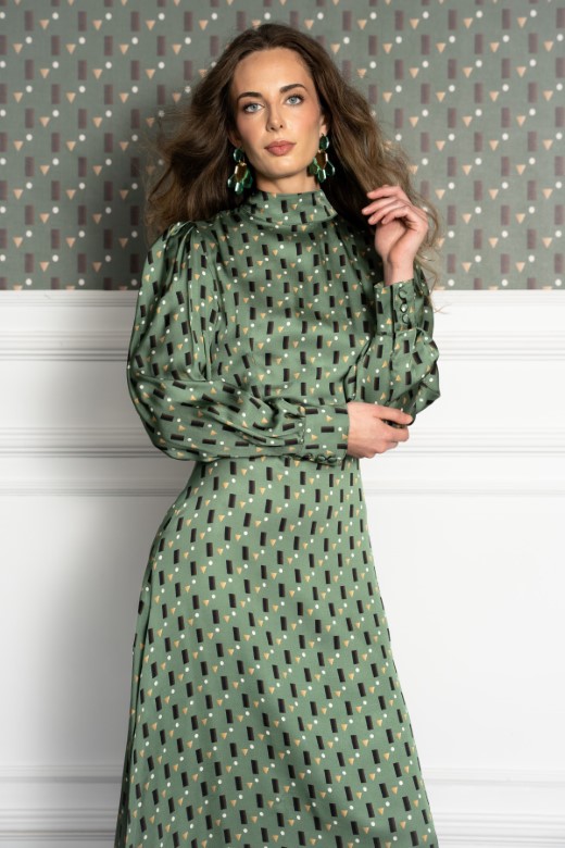 Su estampado geométrico en tonos sutiles lo hace versátil y atemporal.