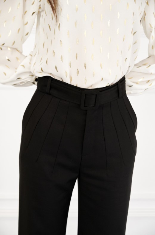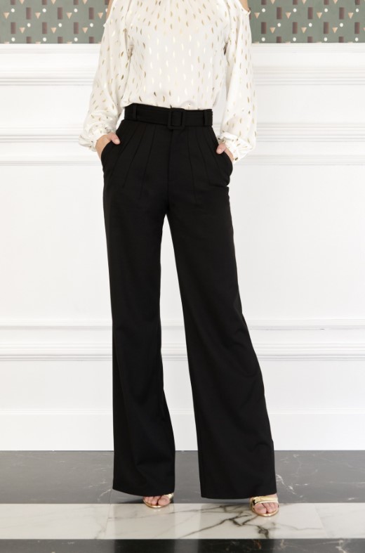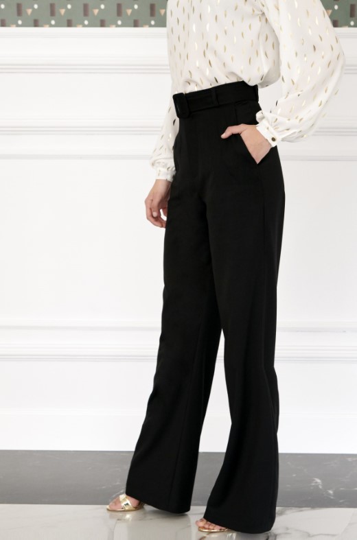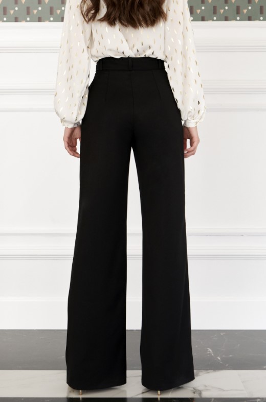 Pantalón negro de tiro alto con cinturilla ajustada, ideal para estilizar la figura.
