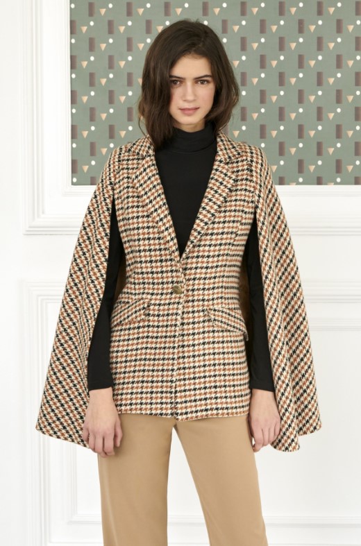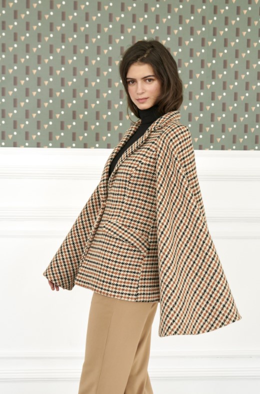 Blazer con estampado de cuadros y mangas amplias estilo capa.